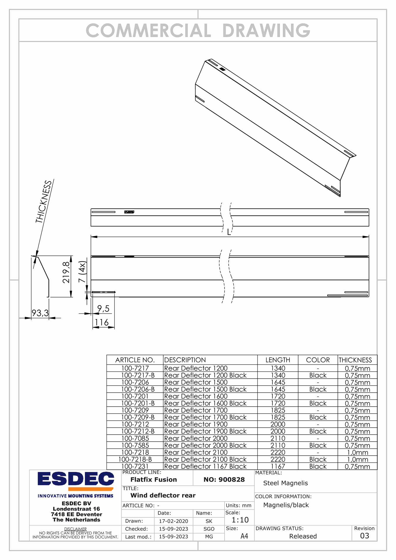 FLATFIX FUSION WIND DEFLECTOR REAR 1600
